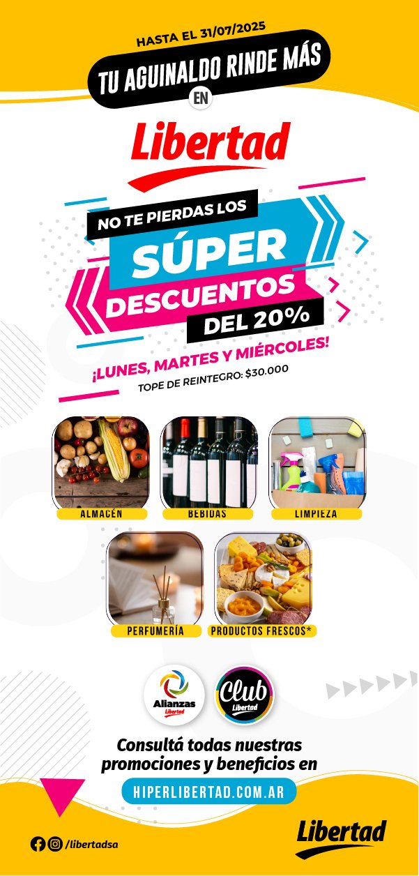 En almacén, bebidas, frescos, perfumería y limpieza. Tope de descuento mensual $30000. Válido para los días lunes, martes, miercolesToda ...